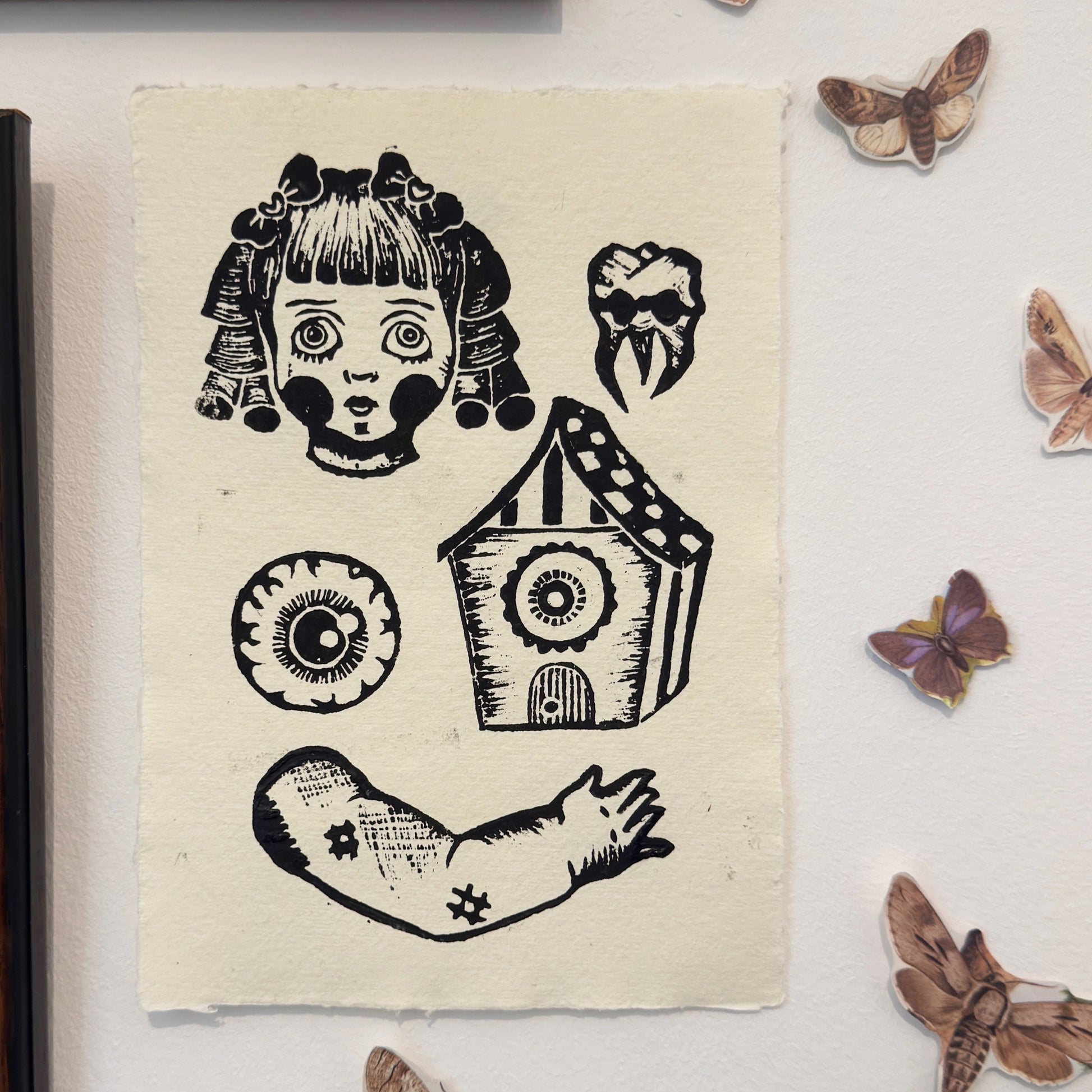 Hand printed A5 dollhouse themed lino print!