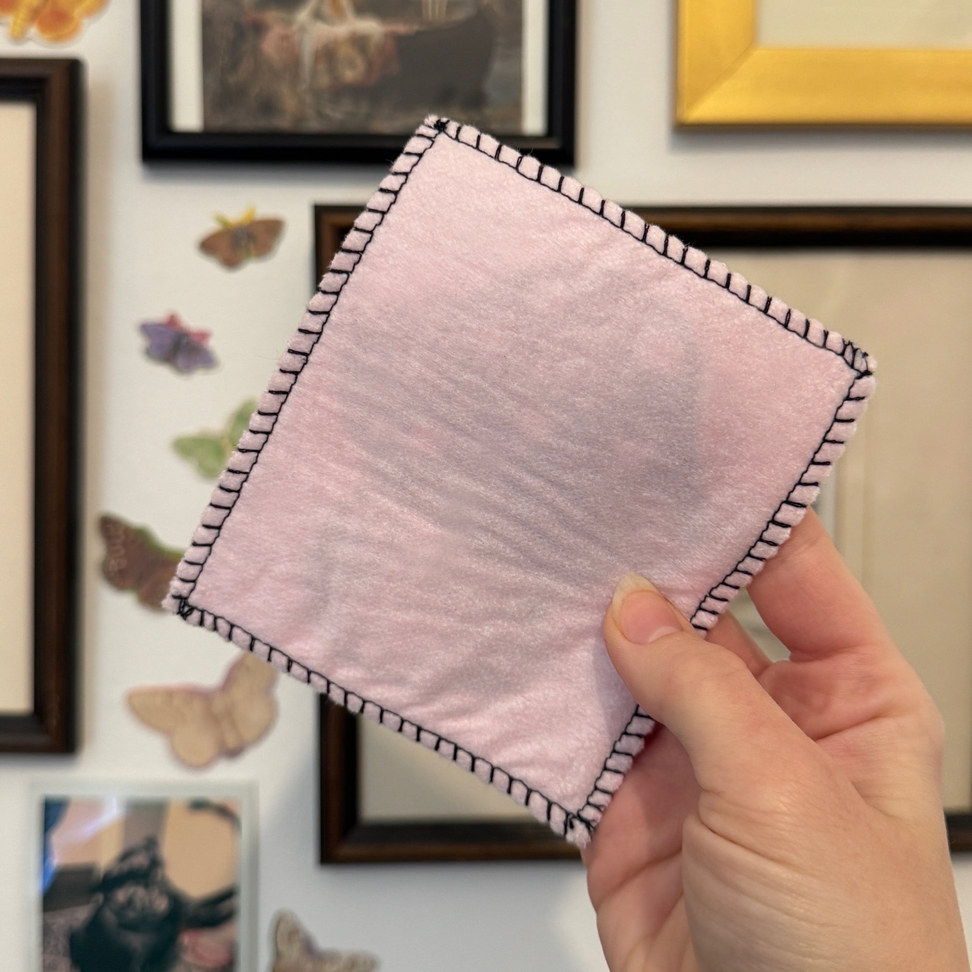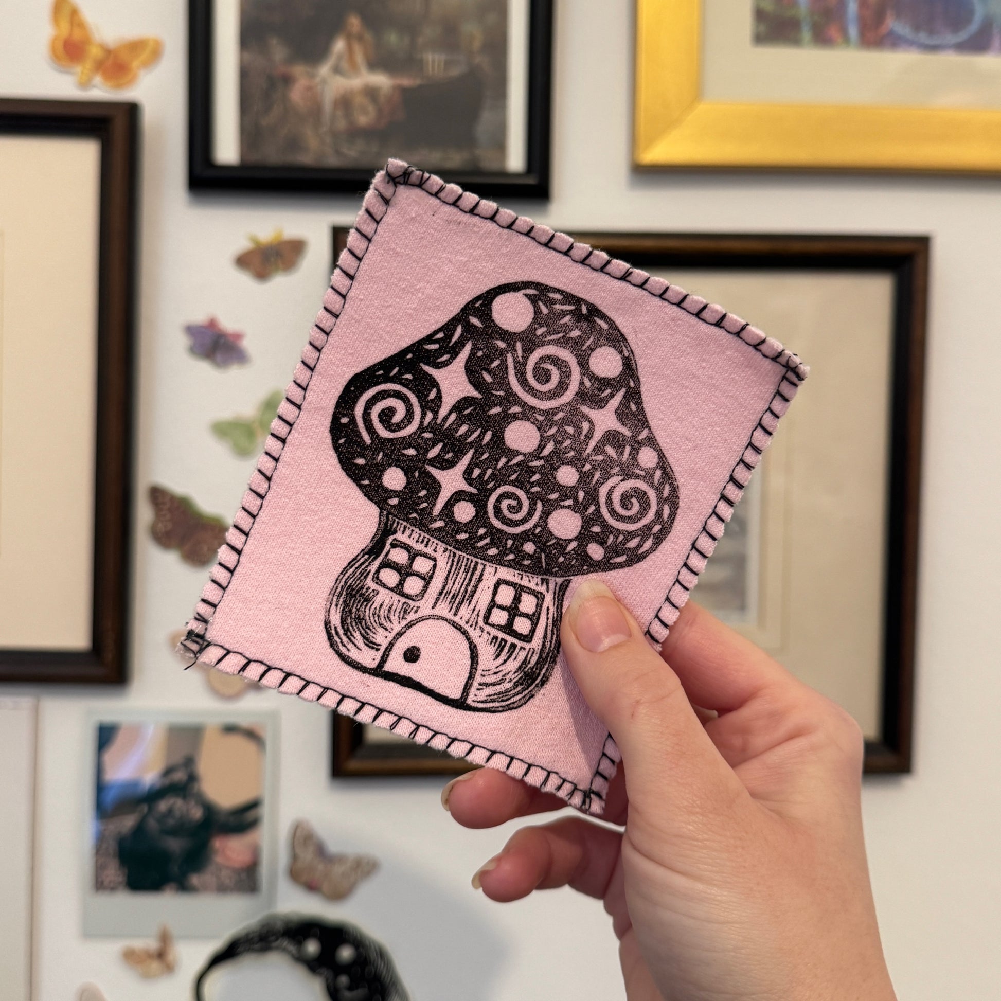 All of my patches have been hand printed by myself and are made using discarded fabric scraps! Each patch can be attached with either fabric glue or by machine sewing / sewing by hand!