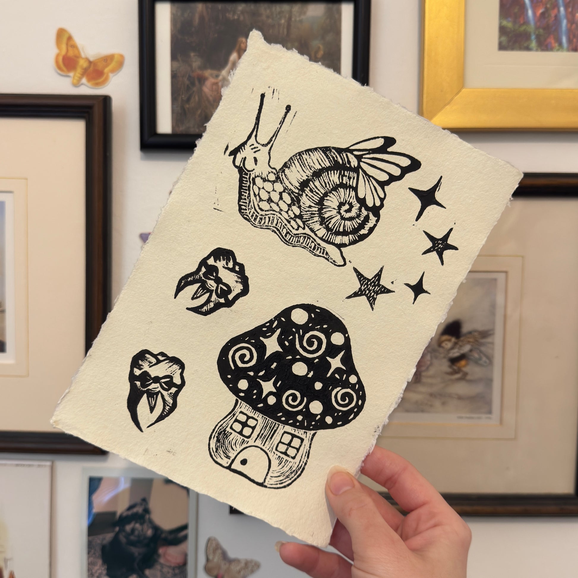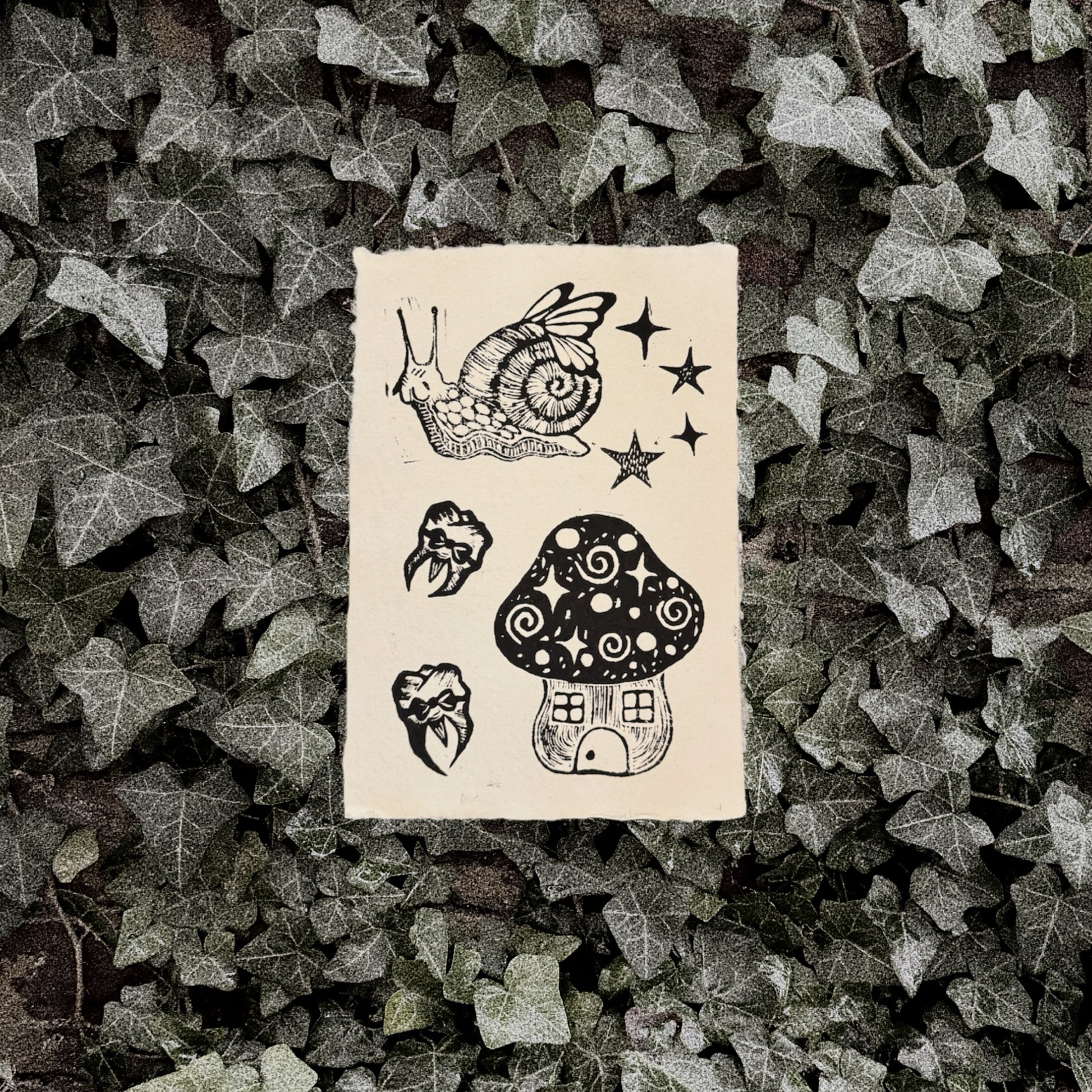 Each of my lino prints has been printed on 150gsm 100% cotton recycled acid free rag paper and is completely one of a kind. Since each piece is hand printed designs may differ slightly from website photos!