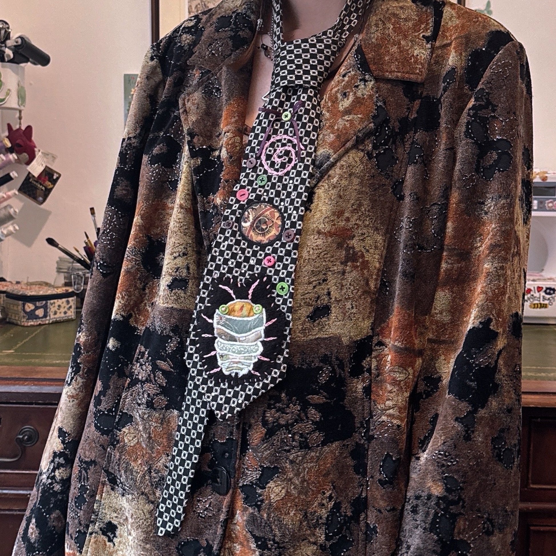 - Handmade patchwork woodlouse appliqué that has been made from vintage secondhand fabric