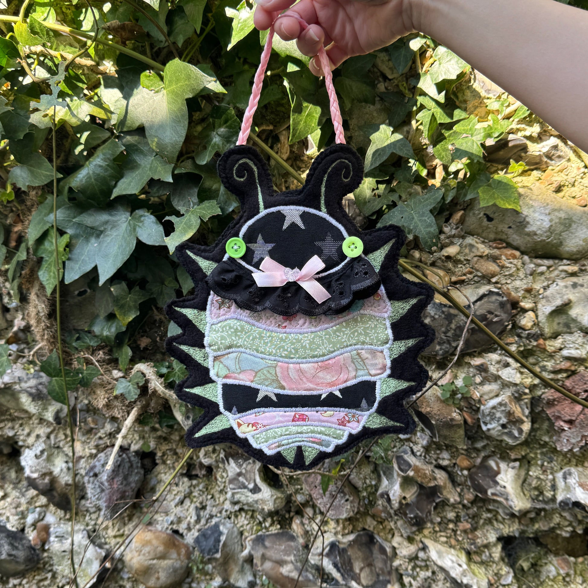 Handmade one of a kind patchwork woodlouse wall hanging!