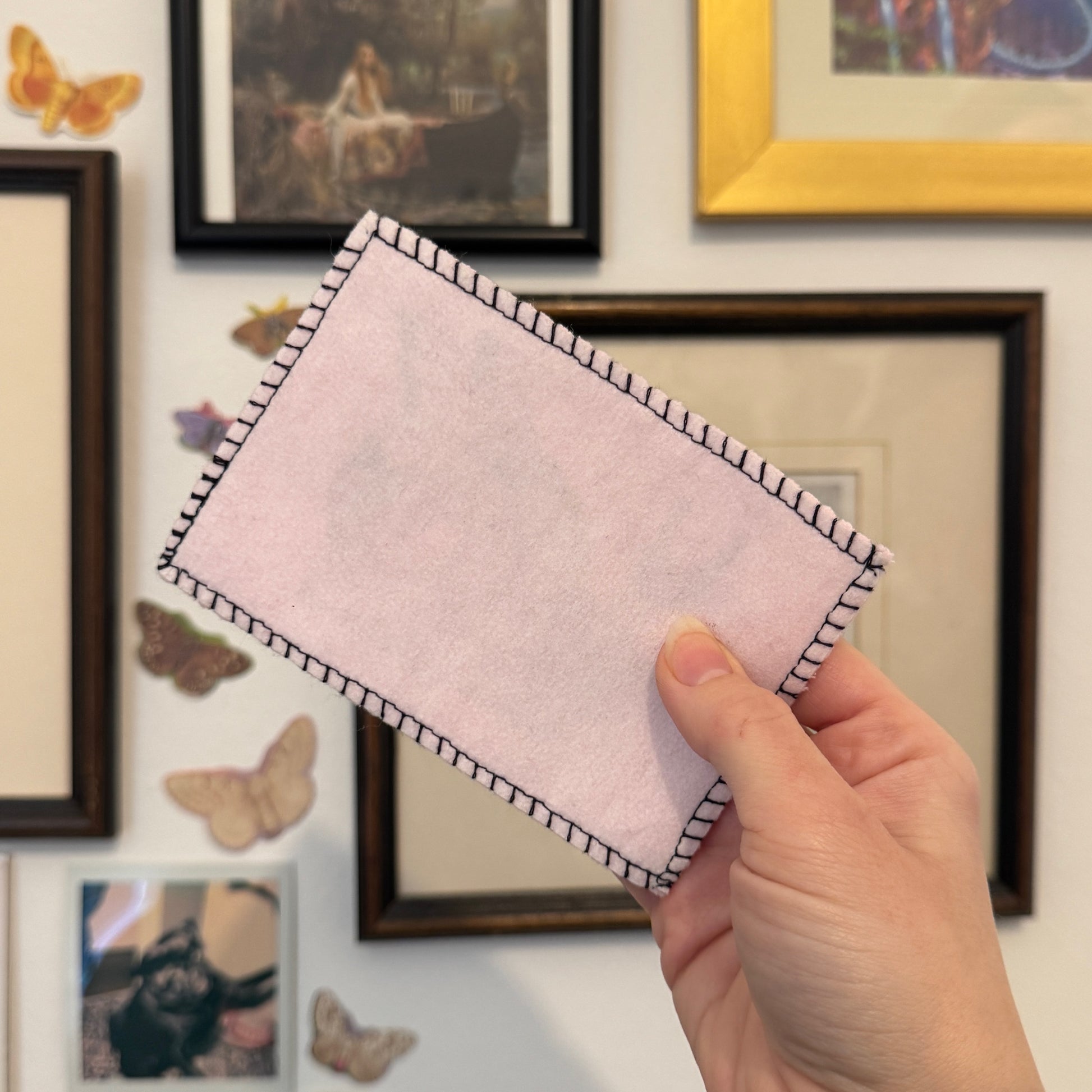 All of my patches have been hand printed by myself and are made using discarded fabric scraps! Each patch can be attached with either fabric glue or by machine sewing / sewing by hand!