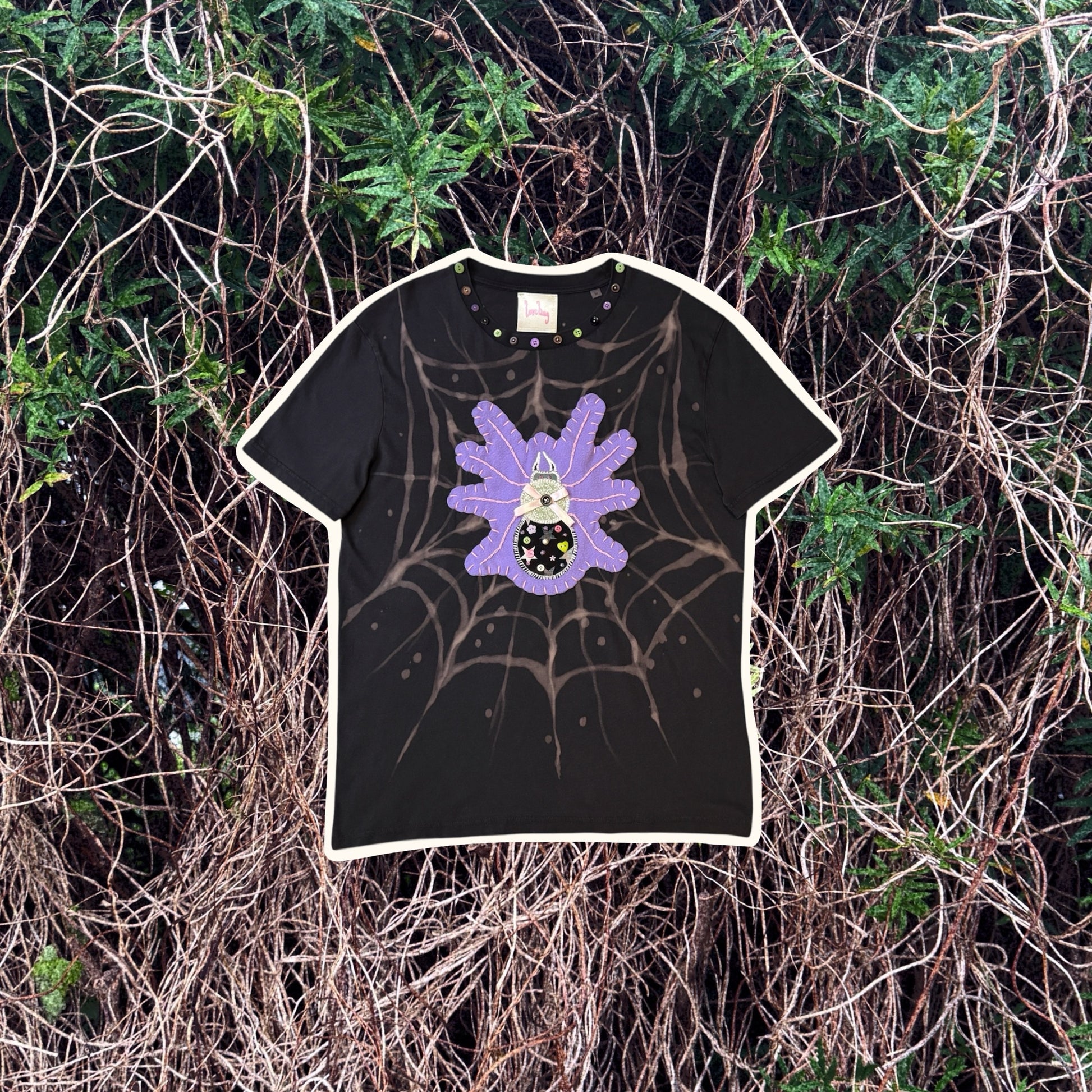 Handmade spider appliqué that has been made from vintage secondhand fabric